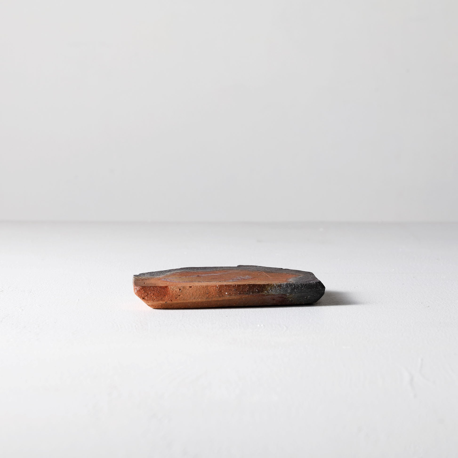 Nishoku (二色) means two colors. Ichiro created the two-color gradation by controlling the amounts of ash and the temperature and humidity inside the kiln. The clear demarcation of colors is difficult to create in Bizen Art, and so this piece exhibits a rare beauty.